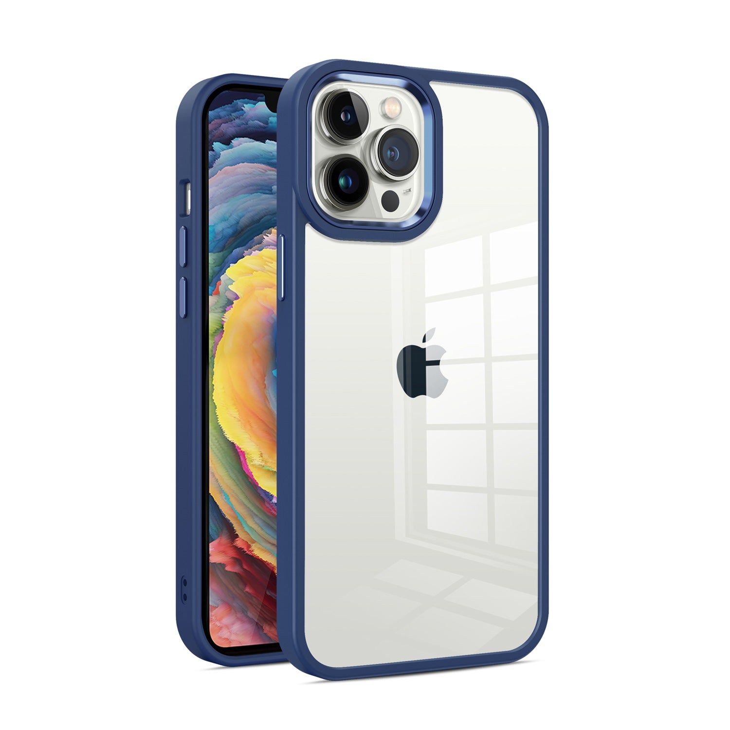 Apple iPhone 14 PRO Finest Transparent Thick Acrylic Hybrid Metal Buttons Cover Case - Blue (1104653)