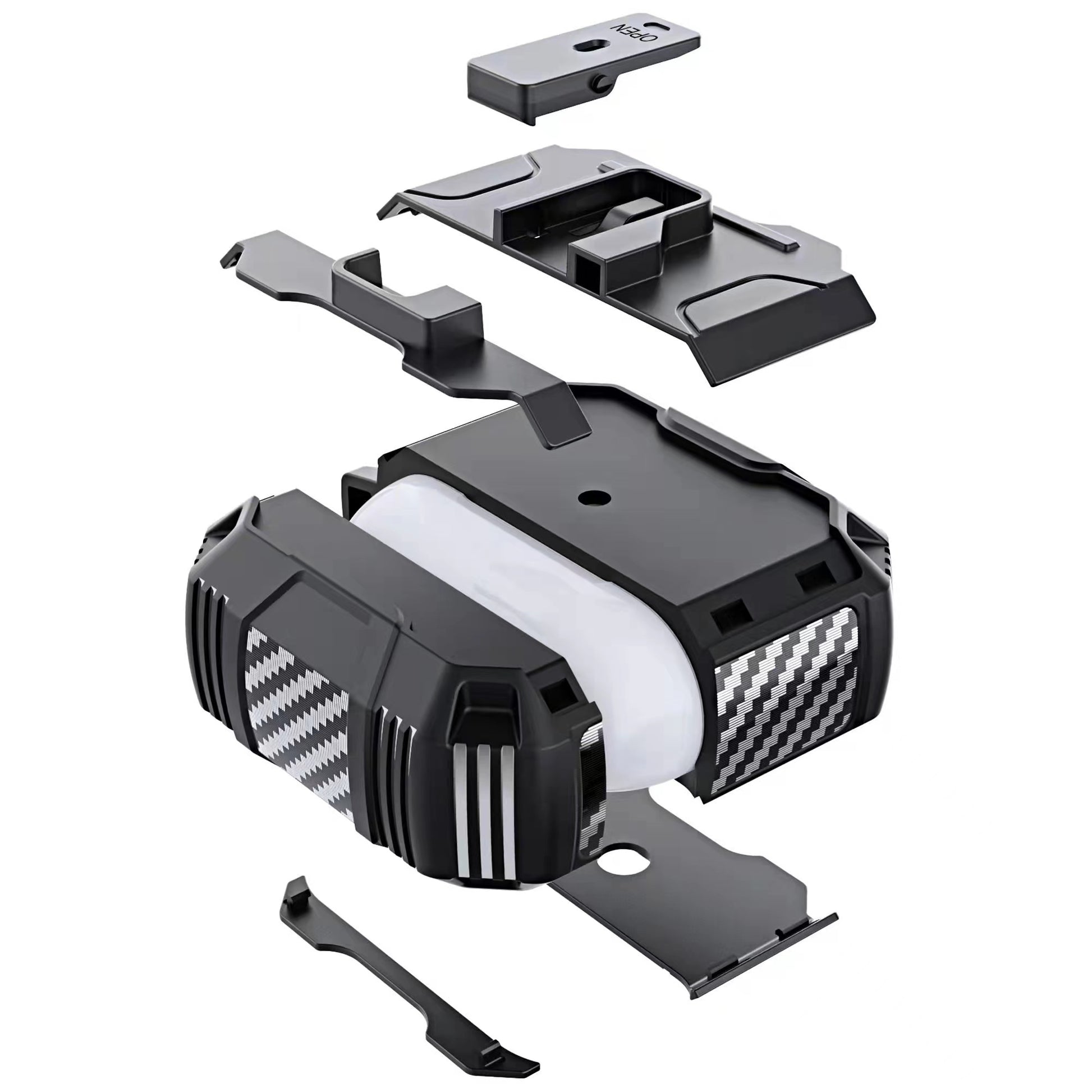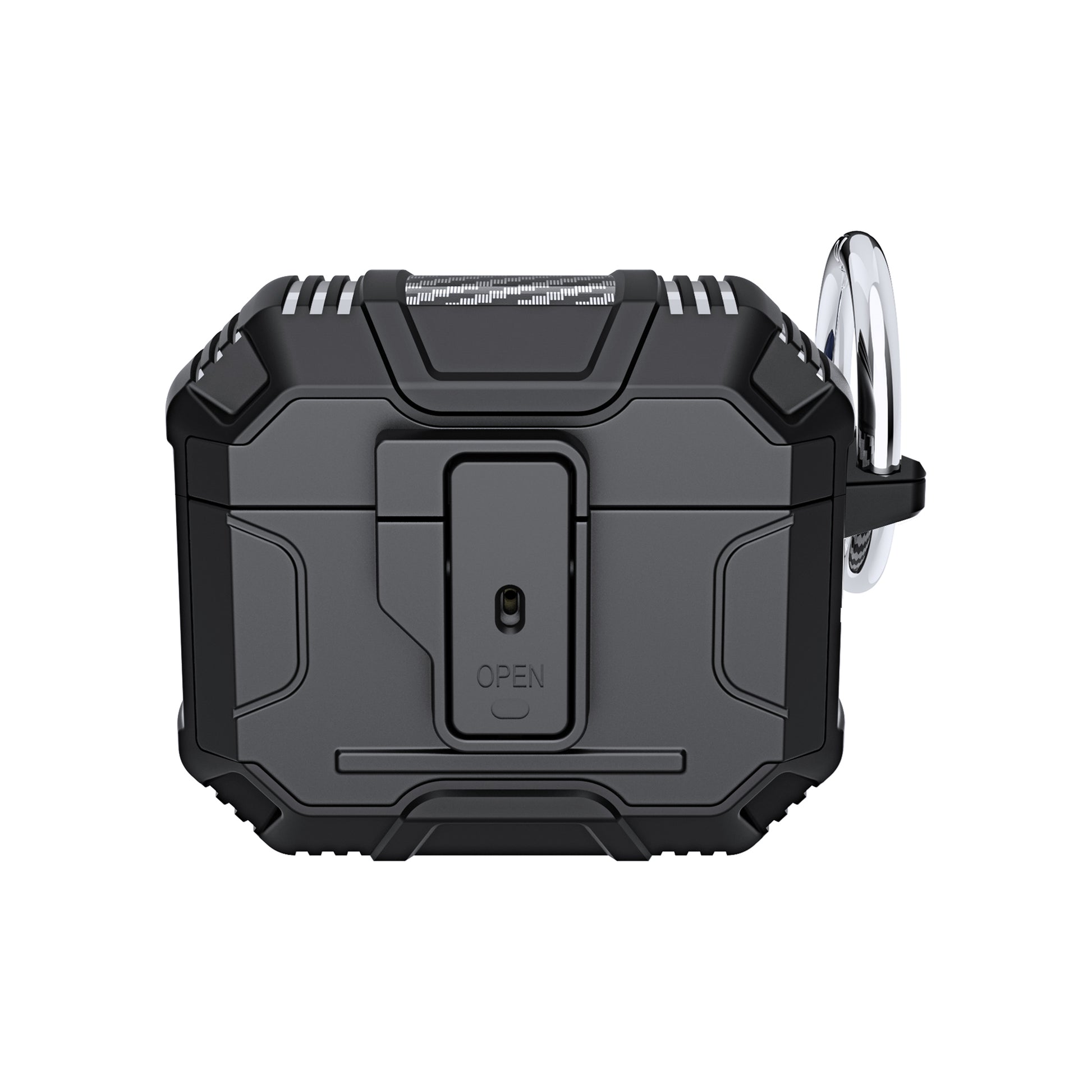 AirPods Pro Rugged ShockProof Hybrid With Open Button Metal Hook Case Cover - Black (1103815)