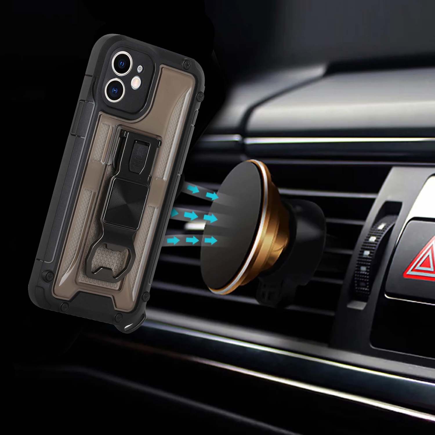 Apple iPhone 13 Pro 6.1 Opener Metal Magnetic Kickstand Hybrid Case Cover - Black (1102153)