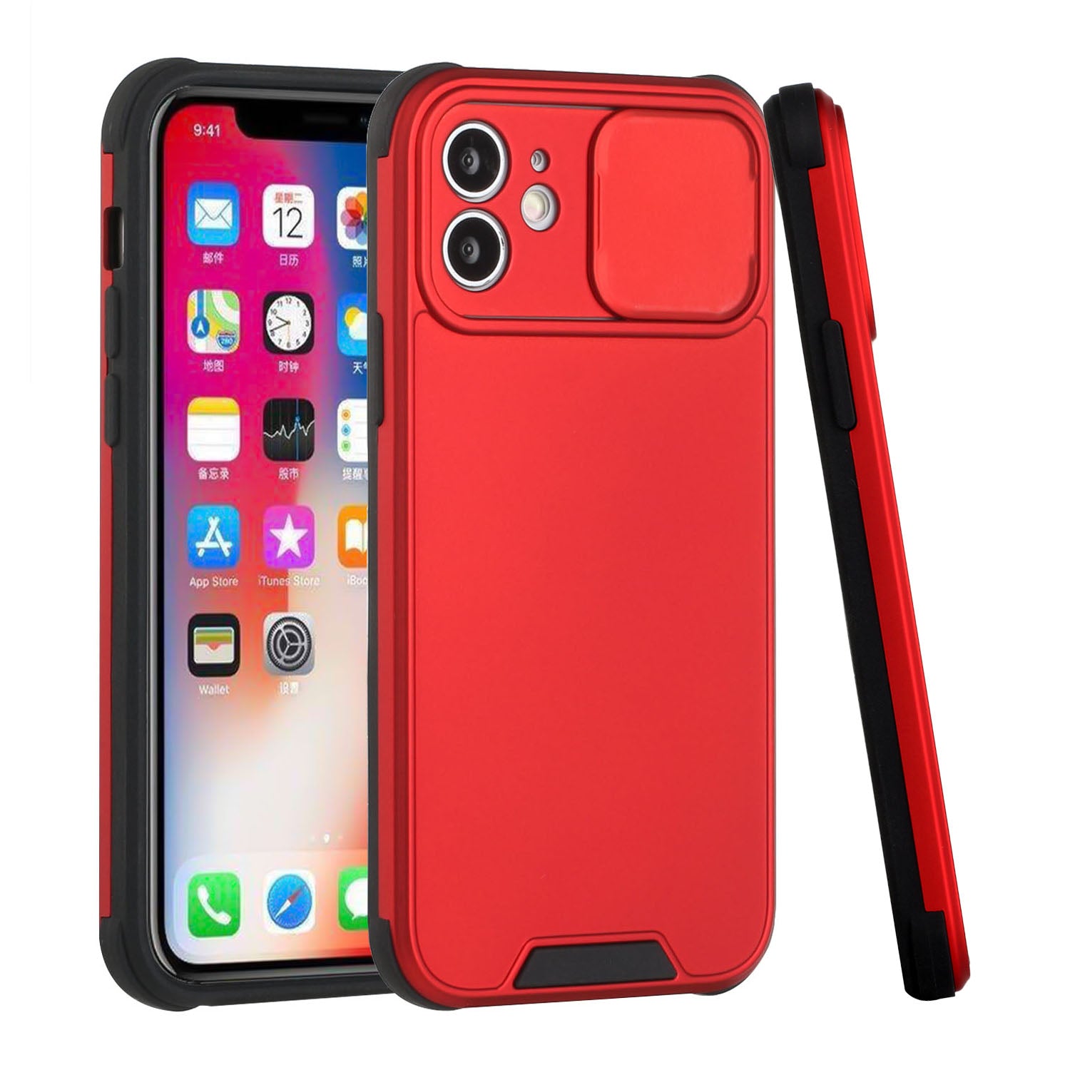 Apple iPhone 13 Pro Heavy Duty Camera Protection Shockproof Hybrid Case Cover - Red (1102767)