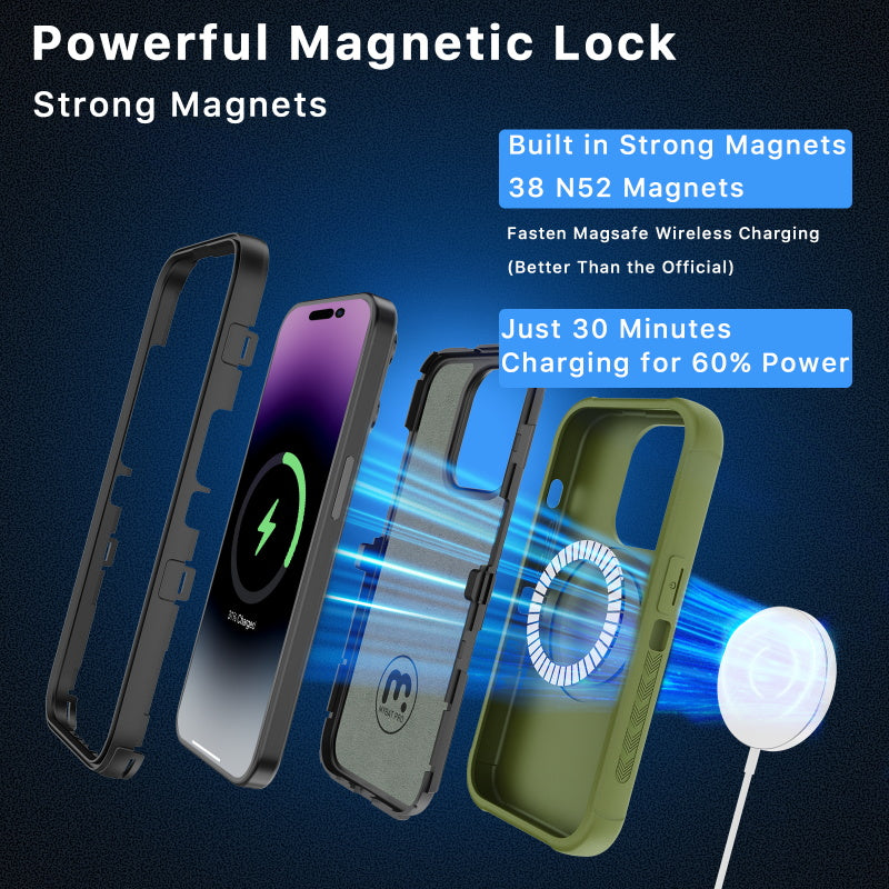 Apple iPhone 15 Pro Max (6.7) MyBat Pro Antimicrobial Maverick Series w/ MagSafe Case with Holster and Tempered Glass - Army Green / Black (1106210)