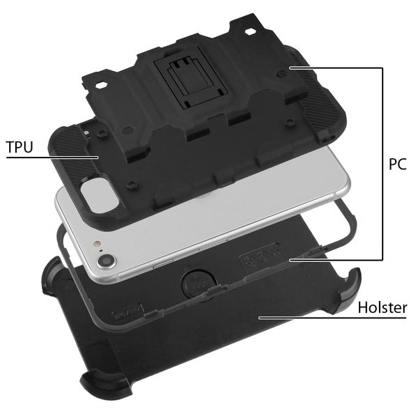 Apple iPhone 8/7 / SE (2020) MyBat 3-in-1 Storm Tank Hybrid Protector Cover Combo with Black Holster & Tempered Glass Screen Protector Military-Grade Certified - Black (1102509)