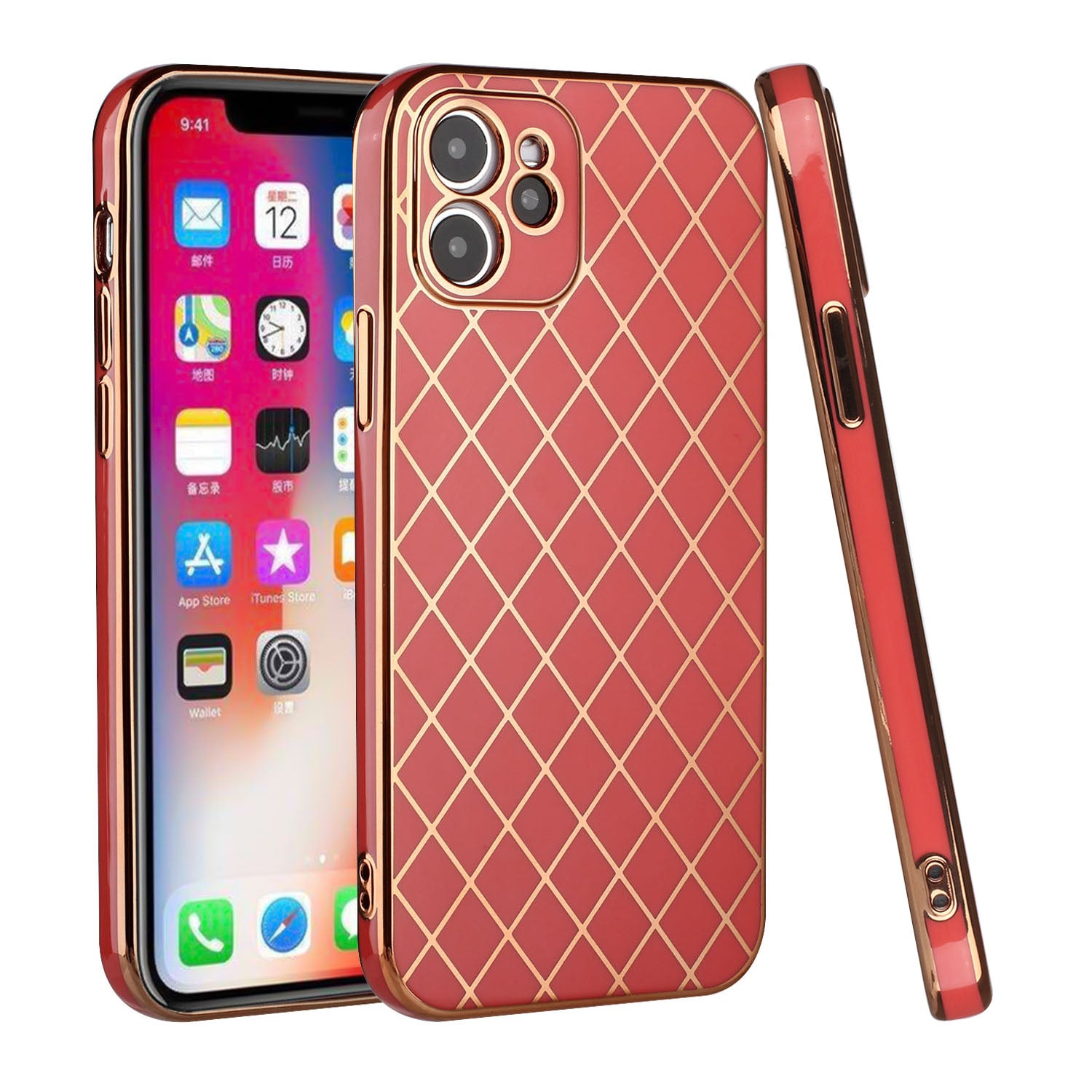Apple iPhone SE2 (2020) 8/7 Electroplated Grid Diamond Lines TPU Case Cover - Red (1103005)