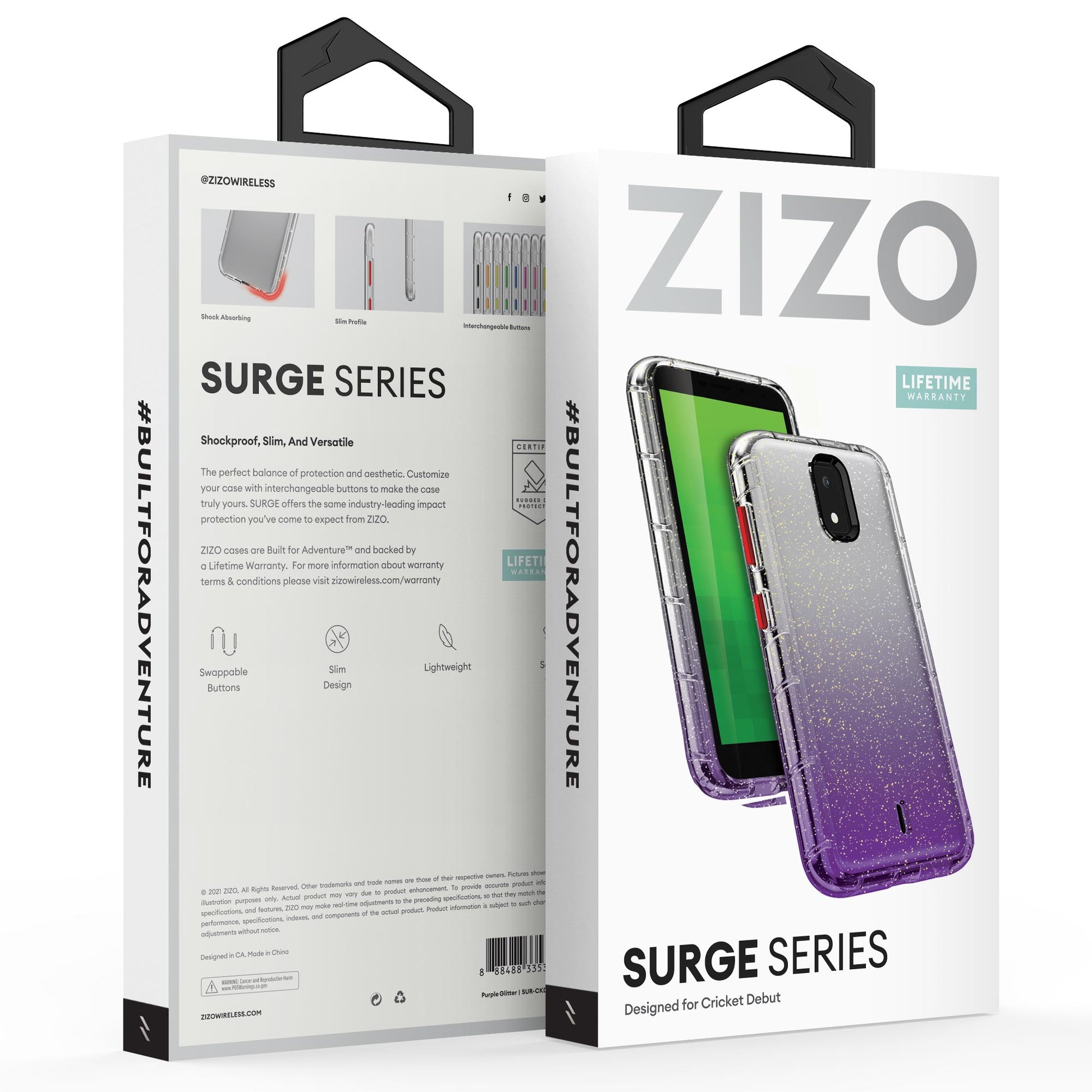 CRICKET DEBUT 4G LTE 5.5INCH ZIZO SURGE SERIES - PURPLE GLITTER (1101820)