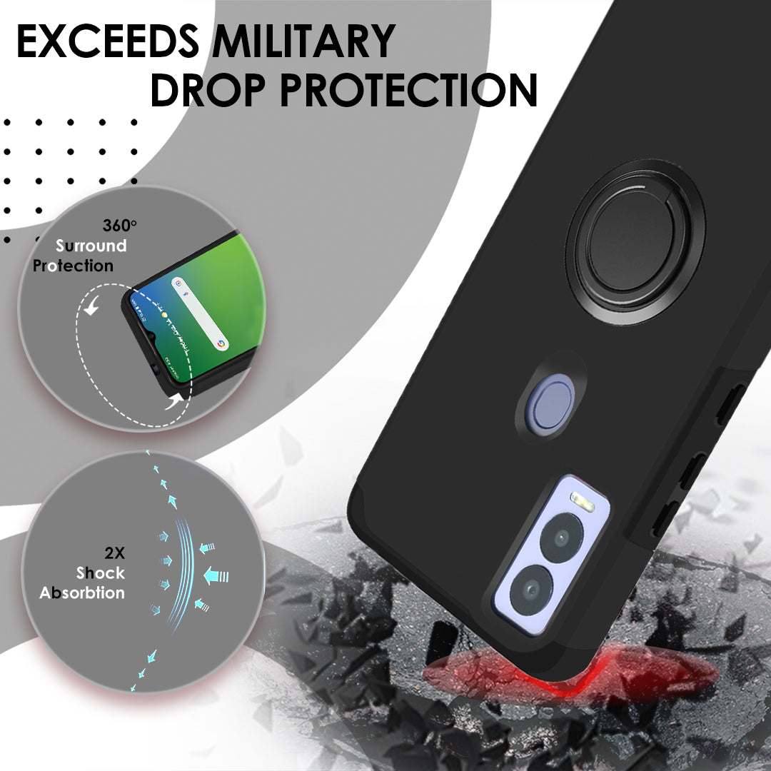 Cricket Magic 5G Tough Hybrid With Ring Stand + Tempered Glass - Black (1106033)