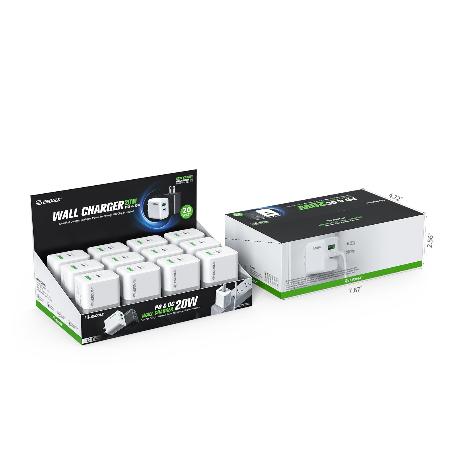 Esoulk 20W PD&QC Wall Charger organized display box with 12 individual units – White (1102923)