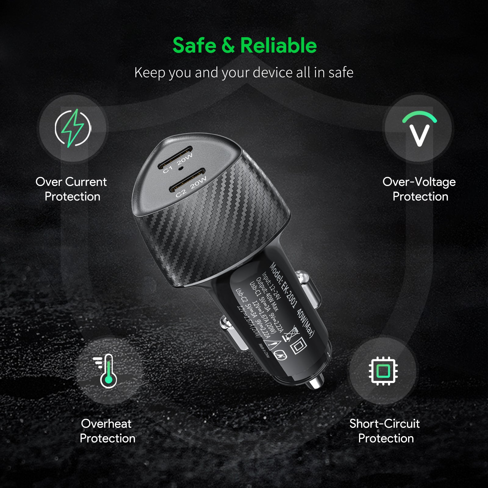 ESOULK 40W Dual Type-C Port FAST CAR CHARGER - Black (1105351)