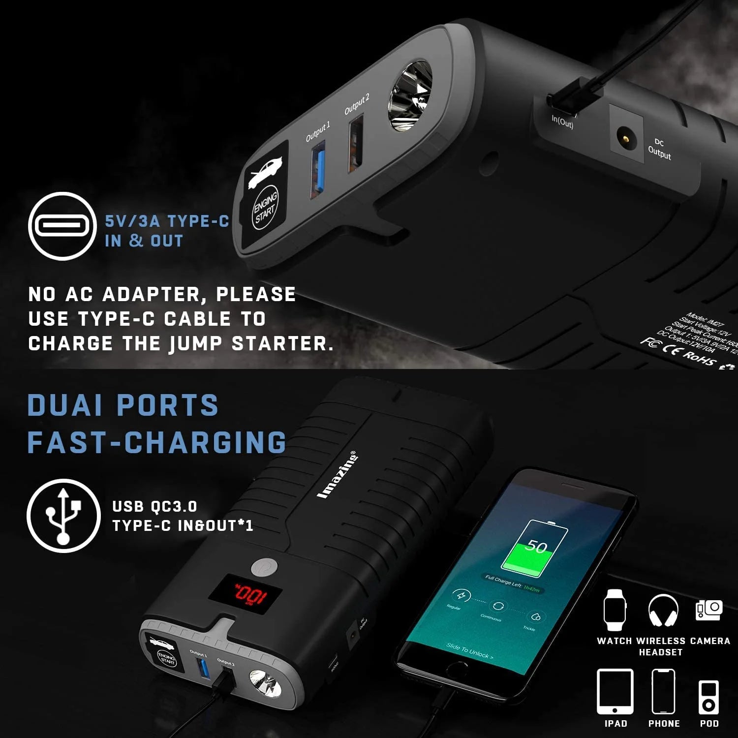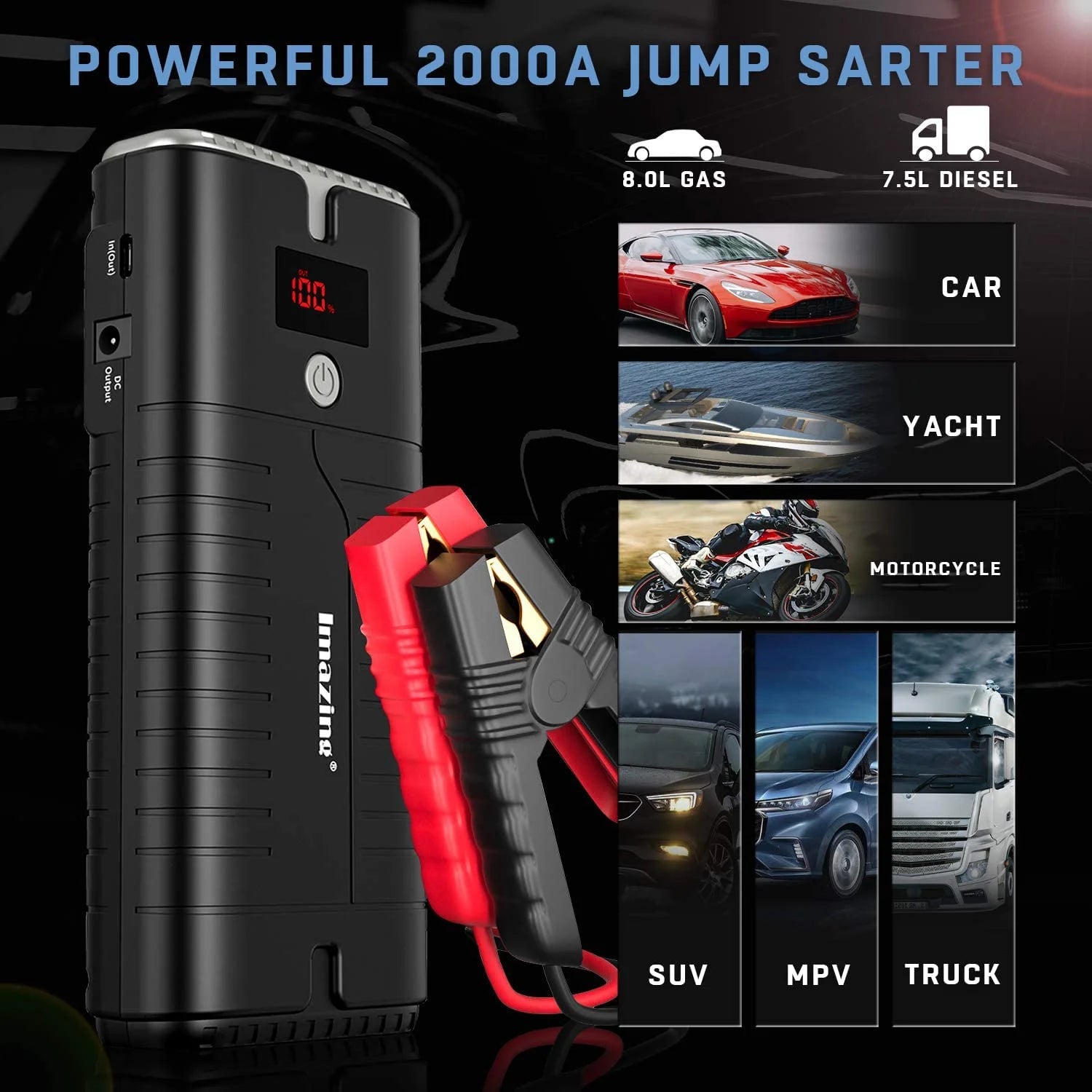 Imazing Portable Car Jump Starter 2000A Peak 18000mAH, 12V Auto Battery Booster Portable Power Pack with LCD Display Jumper Cables, QC 3.0 and LED Light (1102812)