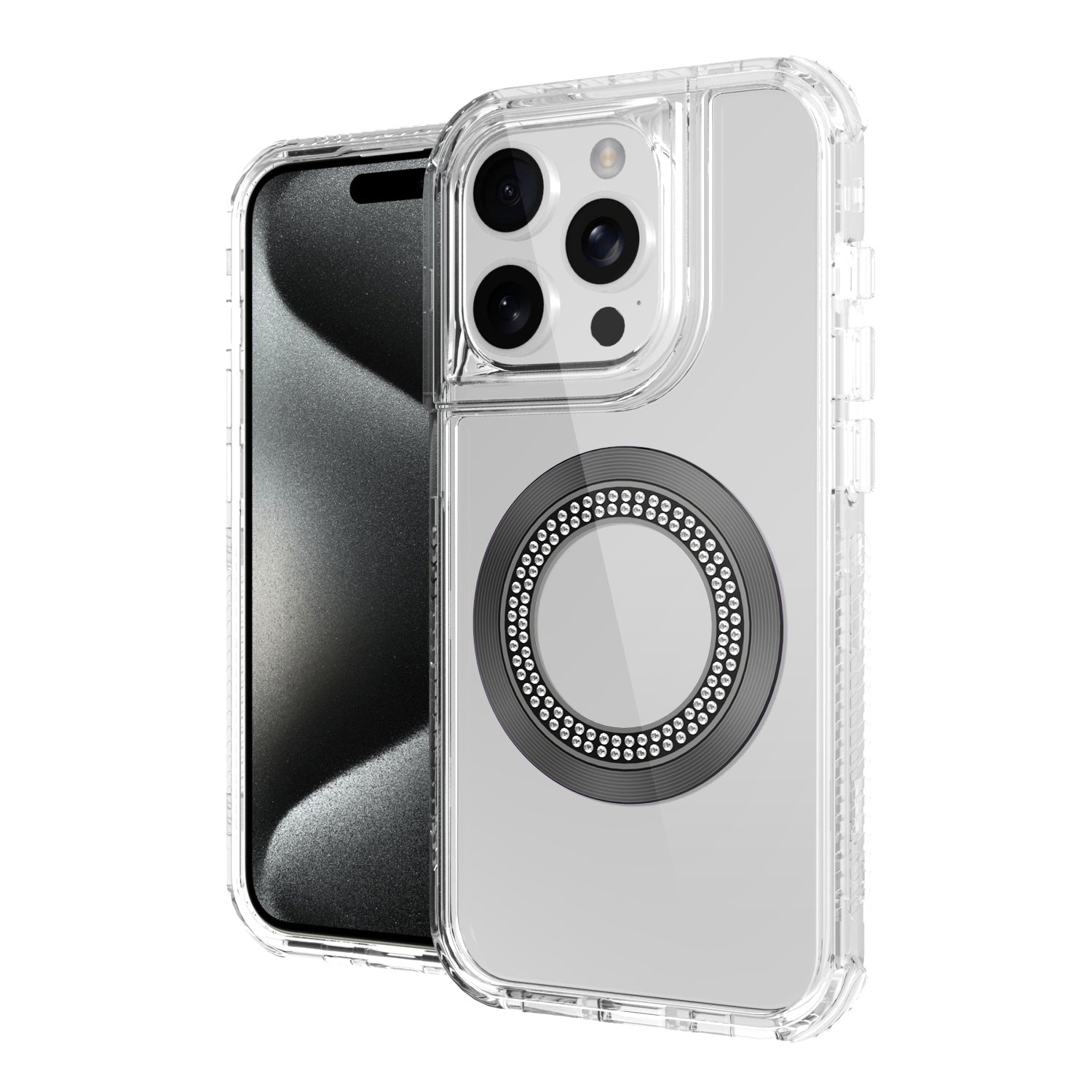 iPhone 12 & iPhone 12 Pro Magnetic Ring Circle Bling Chrome 3in1 Hybrid Case - Clear (1107687)