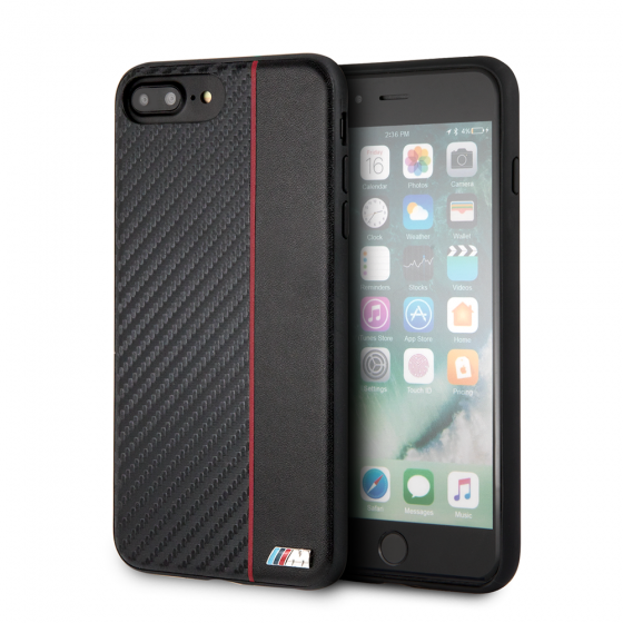 IPHONE 8 PLUS & IPHONE 7 PLUS BMW NAVY STRIPE/ PU CARBON FIBER HARD CASE