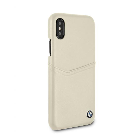 iPhone X & iPhone XS BMW Beige Genuine Leather/Card Slot Hard Case