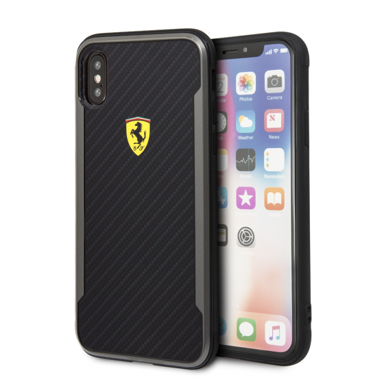 iPhone XS Max Ferrari Black Hard Case with Printed Carbon Effect