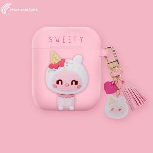 LOFTER Cute Cat Silicone Case Protective Cover for Airpods 1/2 Box -Pink (4824)
