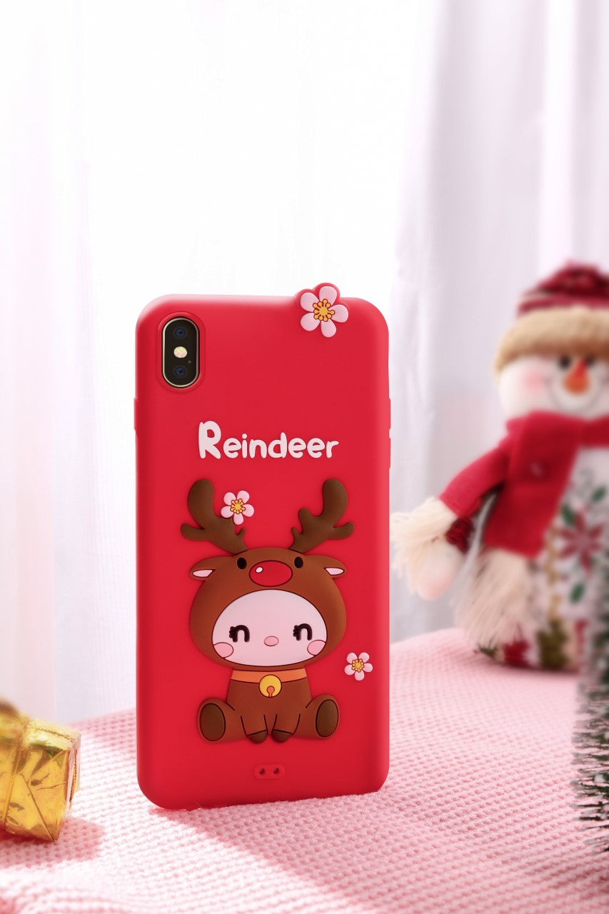 LOFTER Nice Girls Phone Cases A Gift Set Covers Cute 3D Reindeer Flower Silicone TPU Wrist Lanyard Strap For iPhone XS Max (4811)