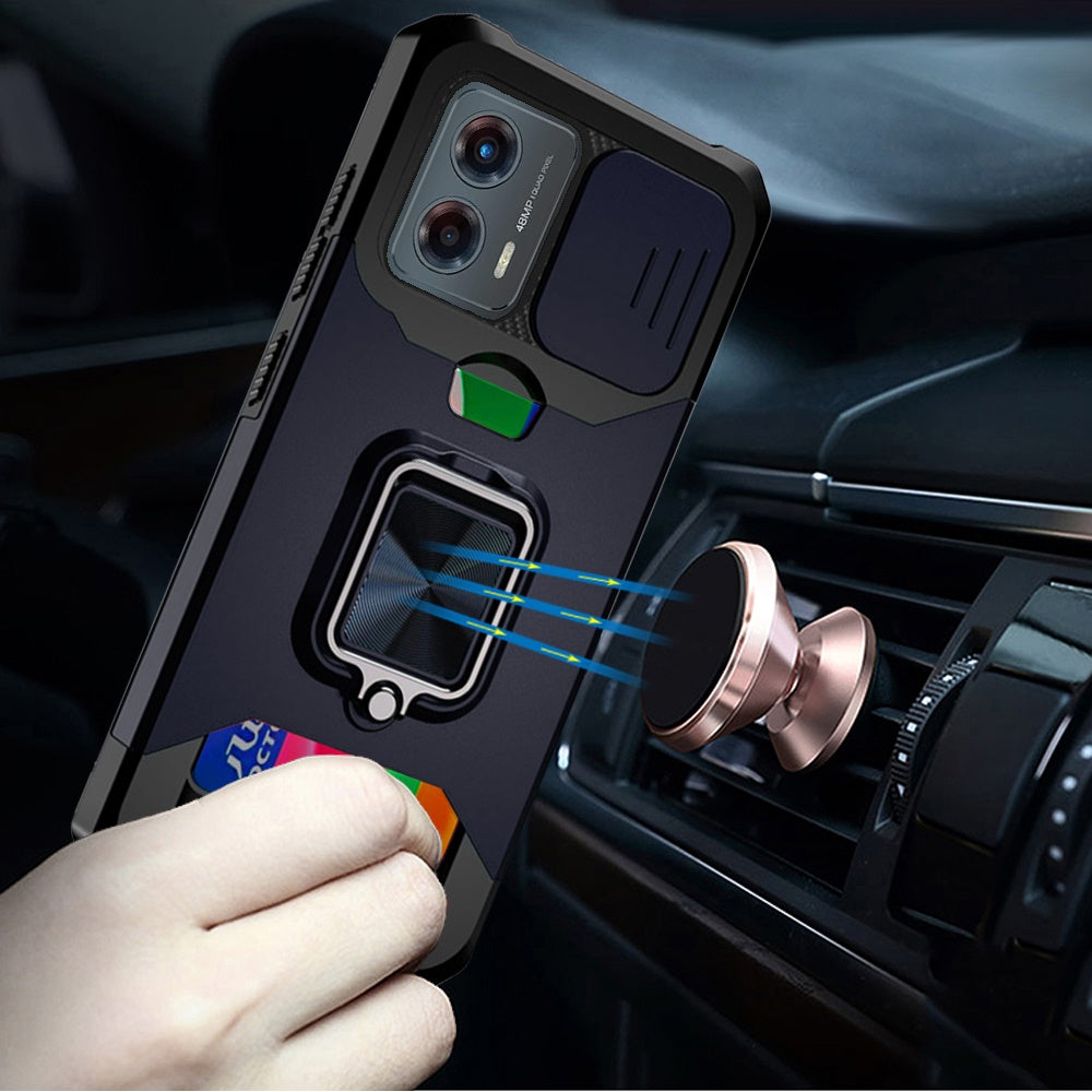 Motorola Moto G 5G 2024 Multi-Functional Card Magnetic Ring Stand Hybrid Camera Case Cover - Blue (1106799)