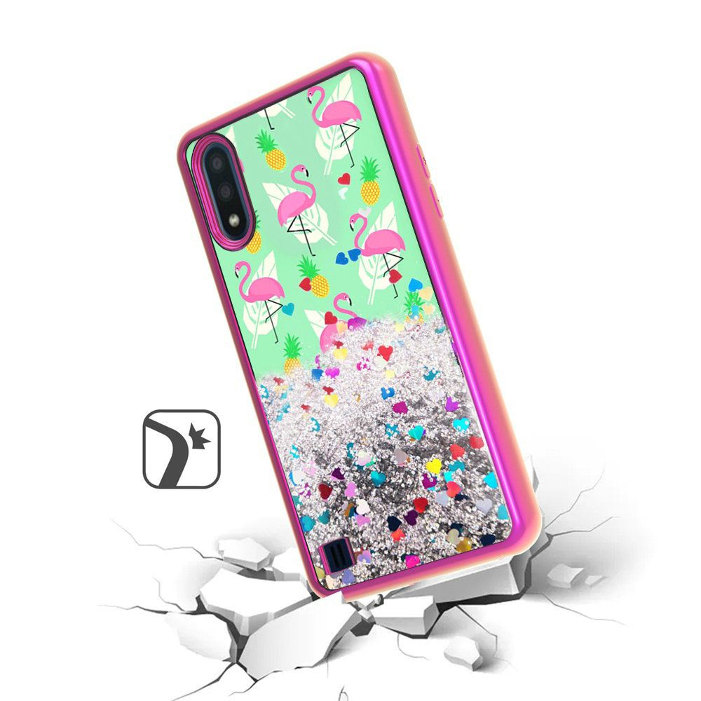 Samsung A01 Design Water Quicksand Glitter Chrome TPU - Flamingo Pineapple Feather (9769)
