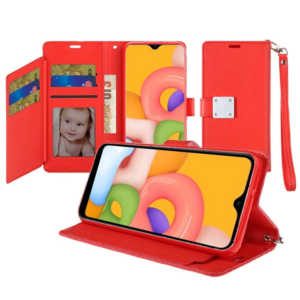 Samsung A01 Wristlet Magnetic Metal Snap Wallet with Two Row Credit Card Holder - Red (9763)