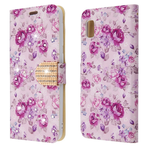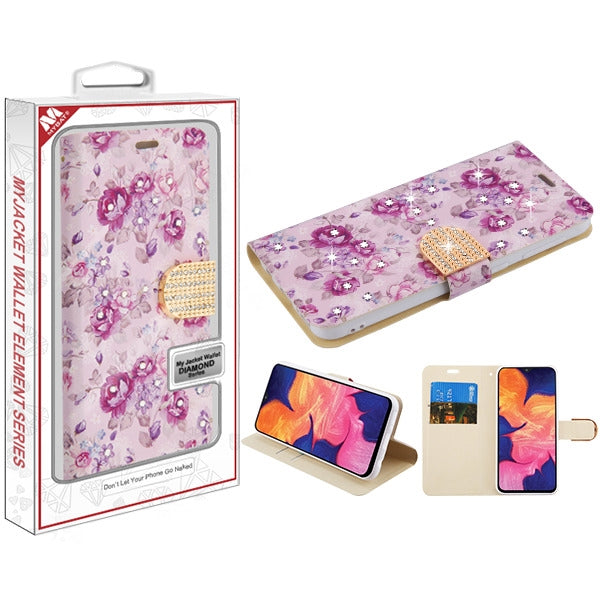SAMSUNG Galaxy A10E - Mybat Fresh Purple Flowers MyJacket Wallet Diamond Series (9726)