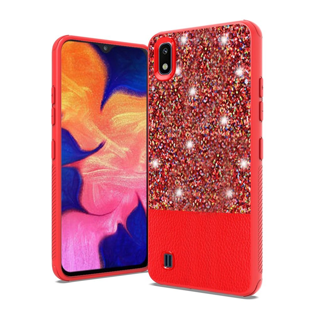 Samsung Galaxy A10e PU Leather Glitter Hybrid with Chrome TPU - Red (86)