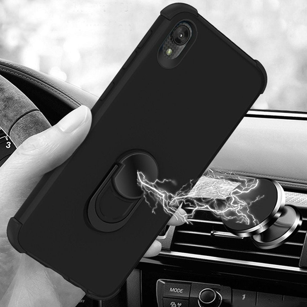 Samsung Galaxy A10e Ring Stand Hybrid w/ Raised Edges - Black/Black (9969)