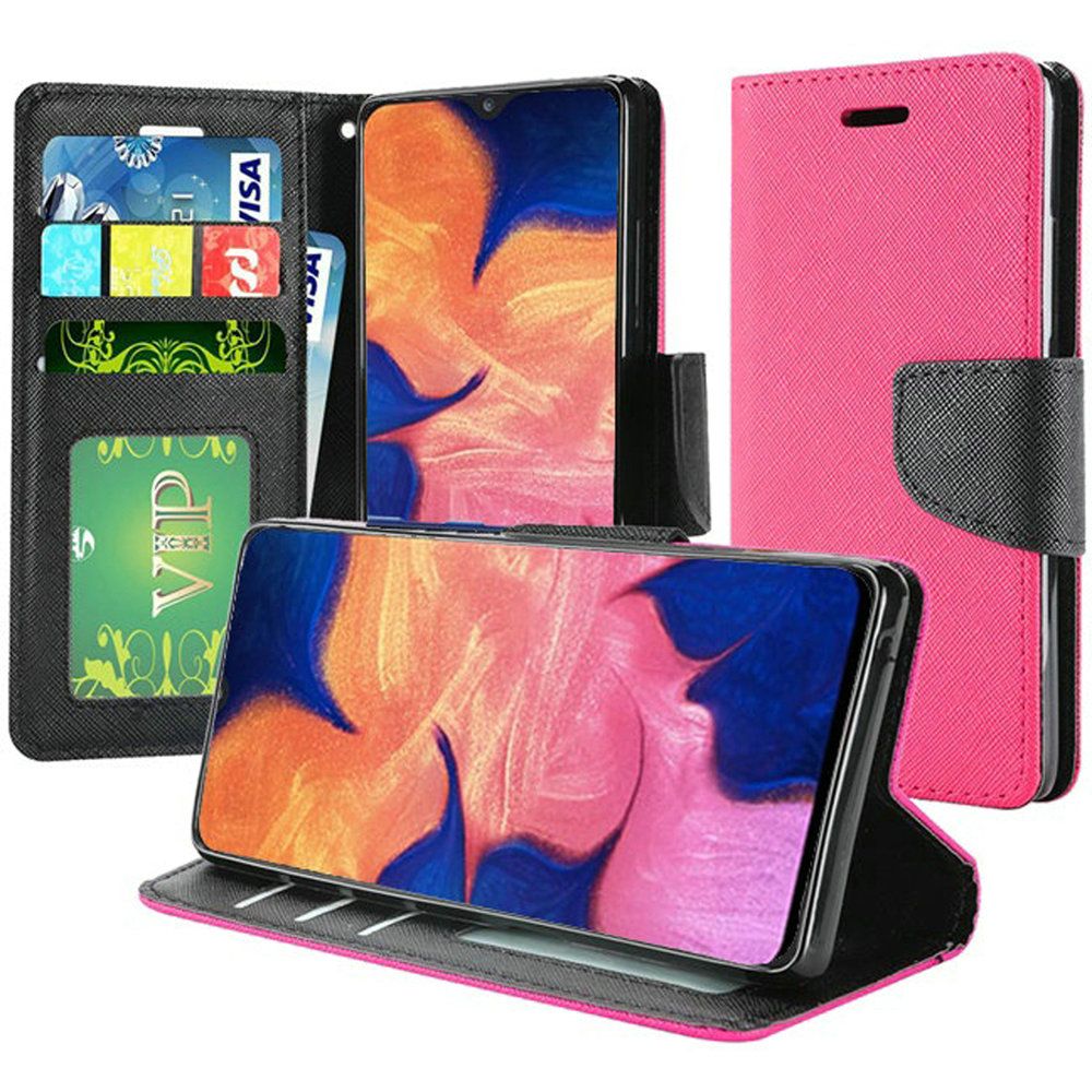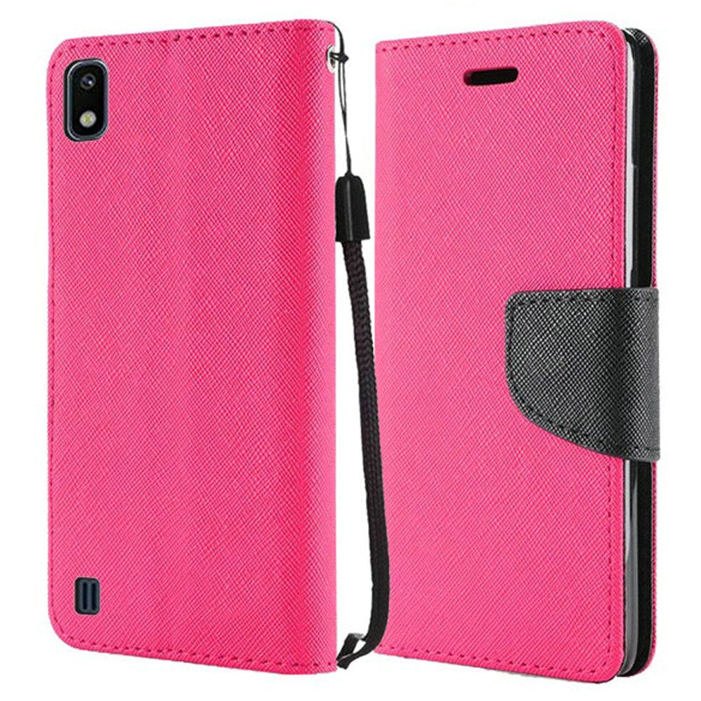 Samsung Galaxy A10e Wallet Flip Case Textured Carbon Fiber - Hot Pink (80)