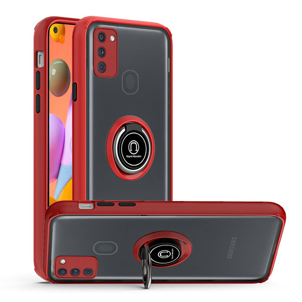 Samsung Galaxy A11 Premium Painted Leather Oil PC TPU w/ Magnetic Metal Ring - Red (10254)