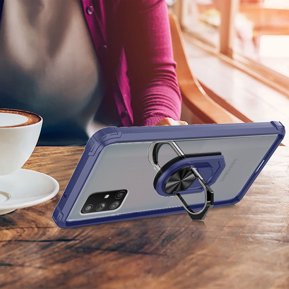 Galaxy A51 5G Transparent Magnetic Ring Kickstand Case Cover - Clear/Blue (10352)
