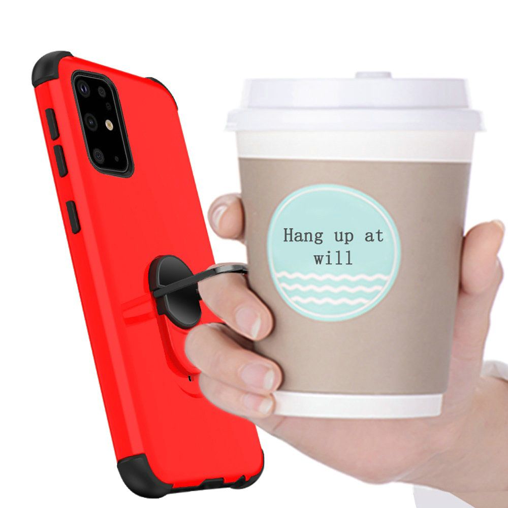 Samsung Galaxy s20 Plus s20+ 360 degree King Ring Stand Hybrid w/ Raised Edges - Red PC/Black (10188)