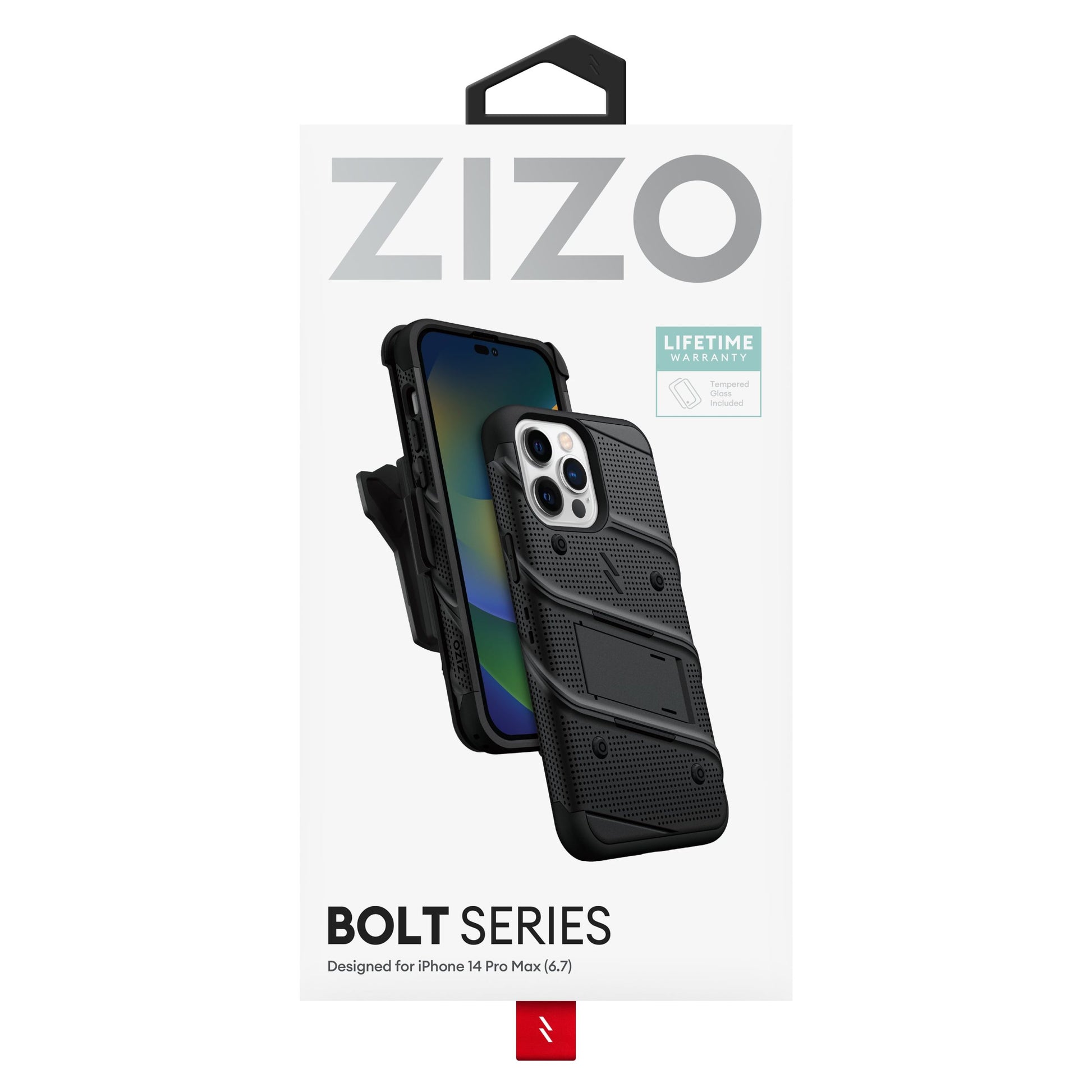 APPLE IPHONE 14 PRO MAX (6.7) ZIZO BOLT BUNDLE CASE WITH TEMPERED GLASS - BLACK & BLACK (1104771)